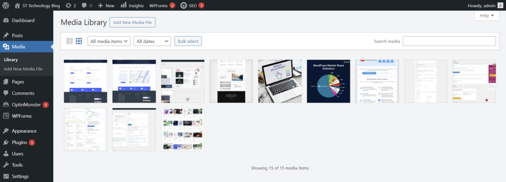 Media là nơi tập trung quản lý (thêm, xóa và chỉnh sửa) toàn bộ hình ảnh, video sẽ và đang được sử dụng trên website.